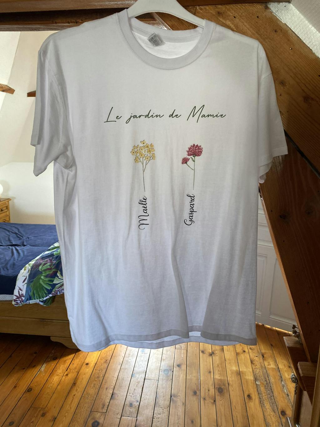 J'ai flashé sur ce joli tee-shirt pour la fête des grands mères. Une idée originale qui change du cadeau classique. Et il a eu son effet sur la personne qui le reçoit !