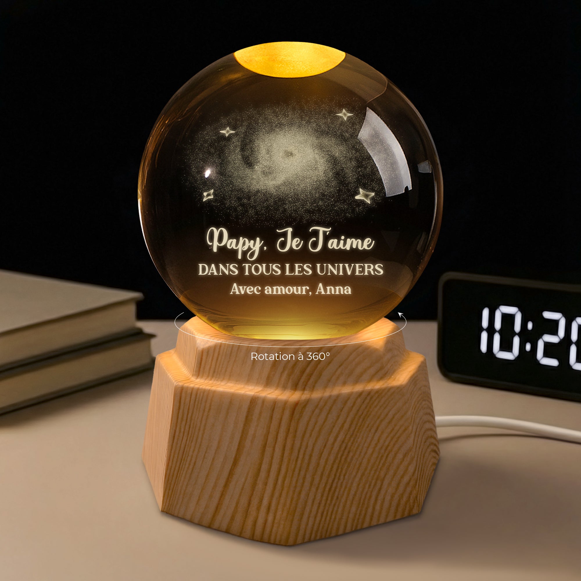 Aimer Mamie Papy Dans Tous Les Univers - Veilleuse Boule De Cristal 3D Personnalisée
