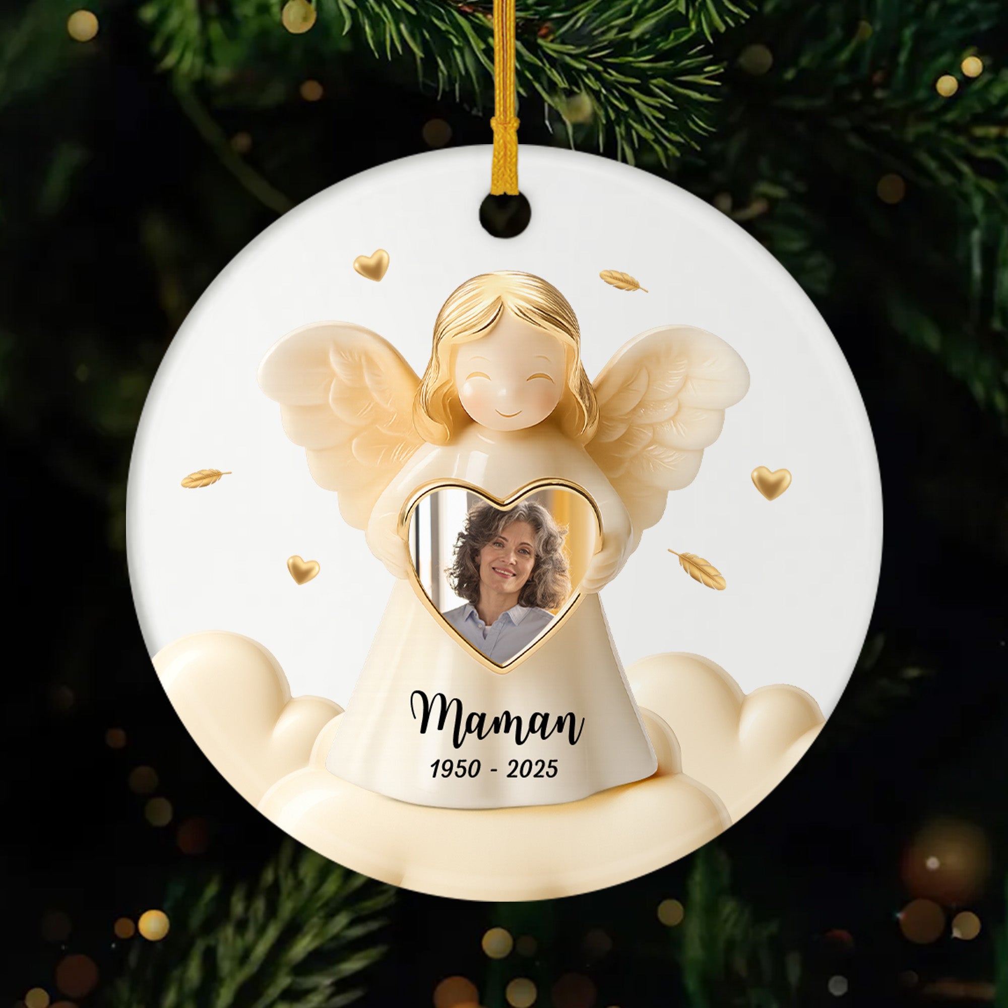 Ange Avec Cœur - Ornement Noël Céramique Maman Commémoratif Personnalisé Avec Photo