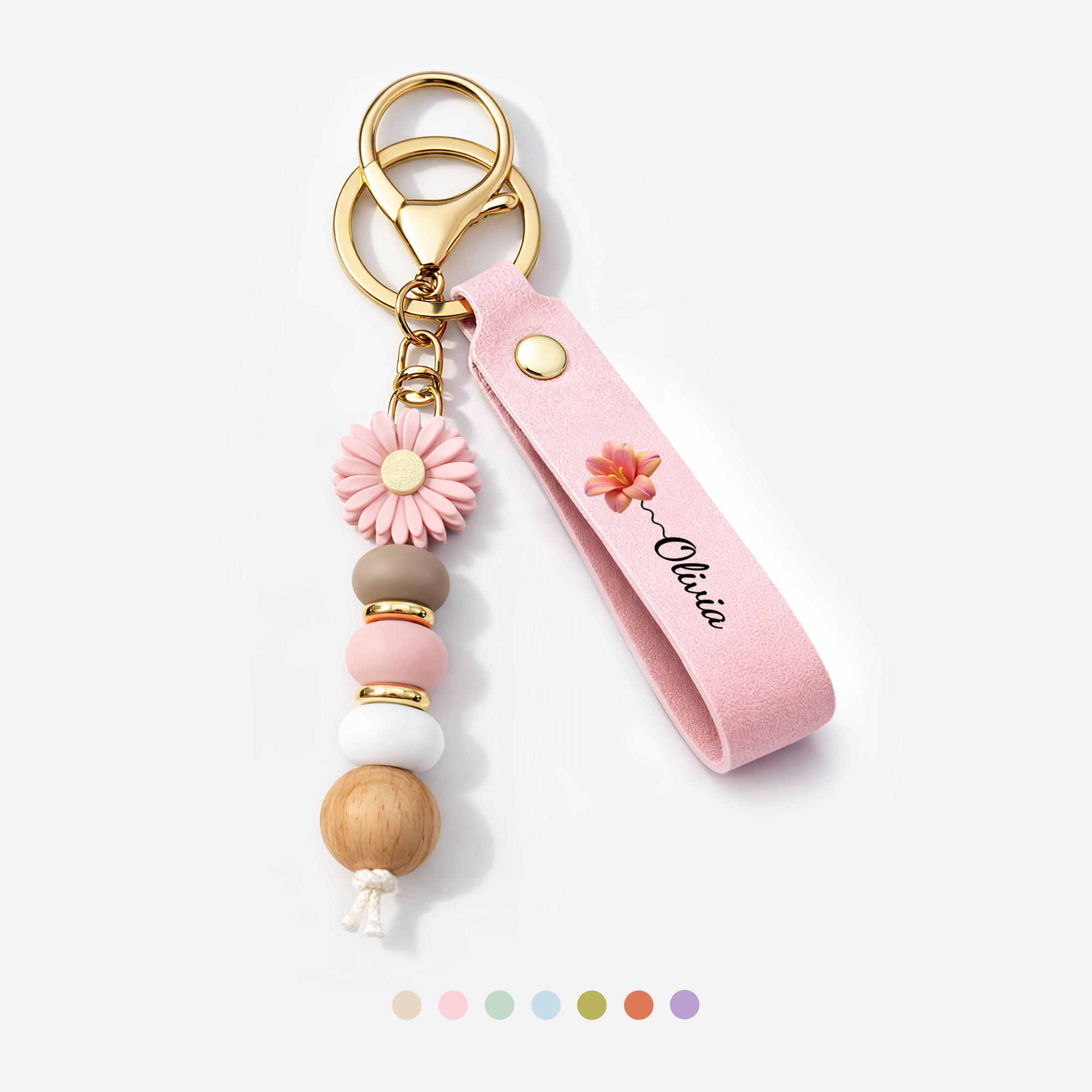 Belle Fleur Pour Femme - Porte-clés Personnalisé Marguerite En Perles Imprimé UV