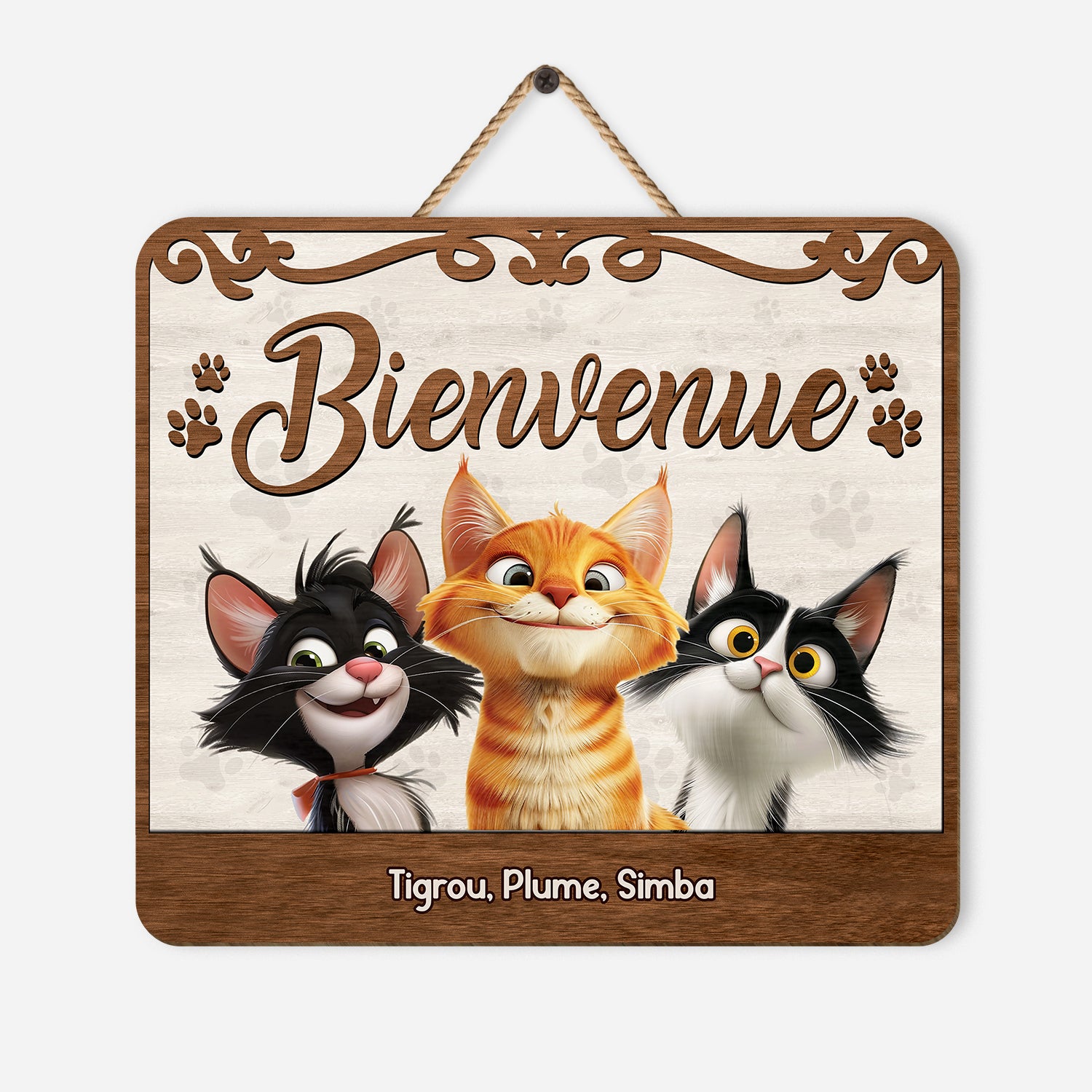 Bienvenue Version Chat Malin - Plaque En Bois Personnalisée