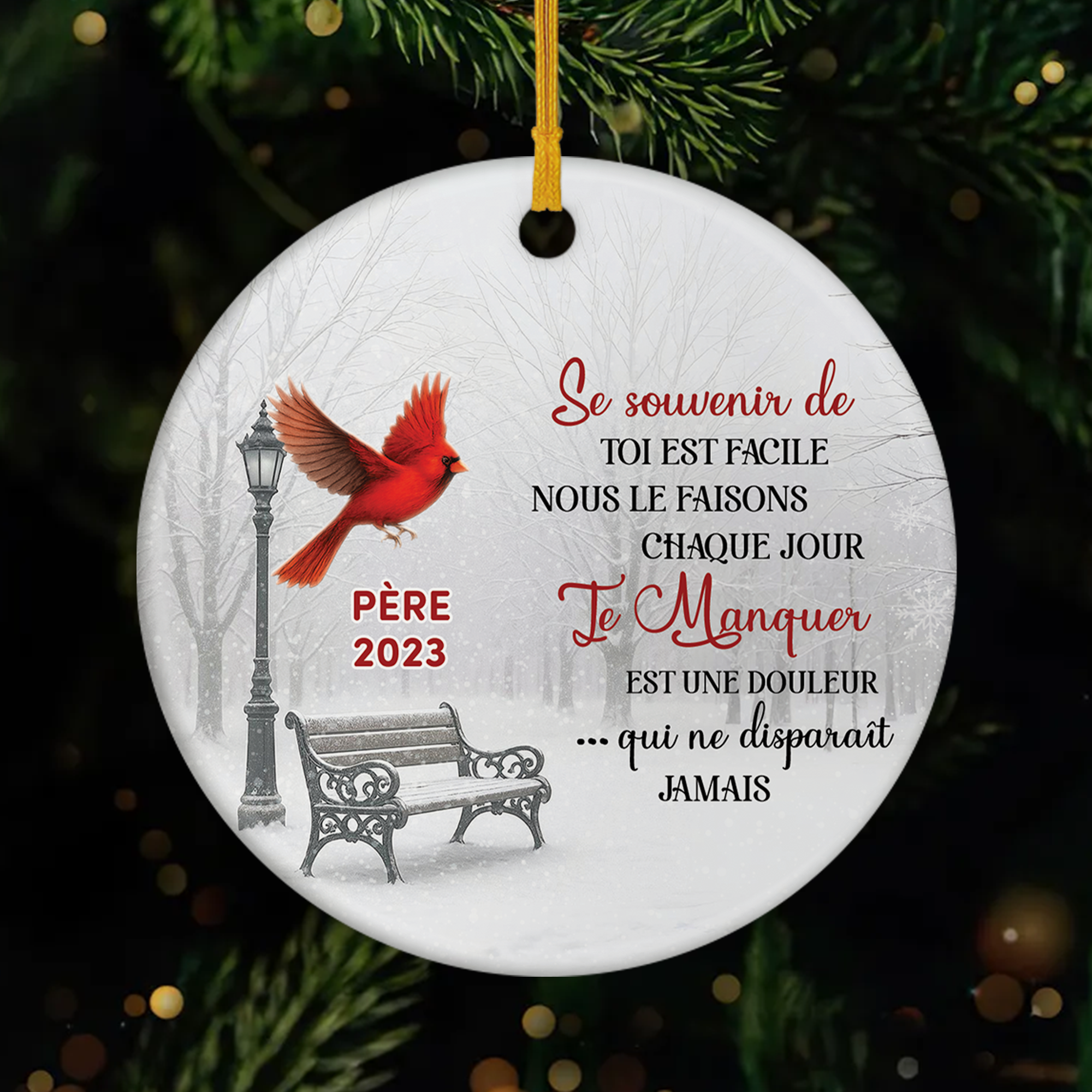 Cardinal Rouge Dans Mon Coeur - Ornement Noël Céramique Commémoratif Personnalisé