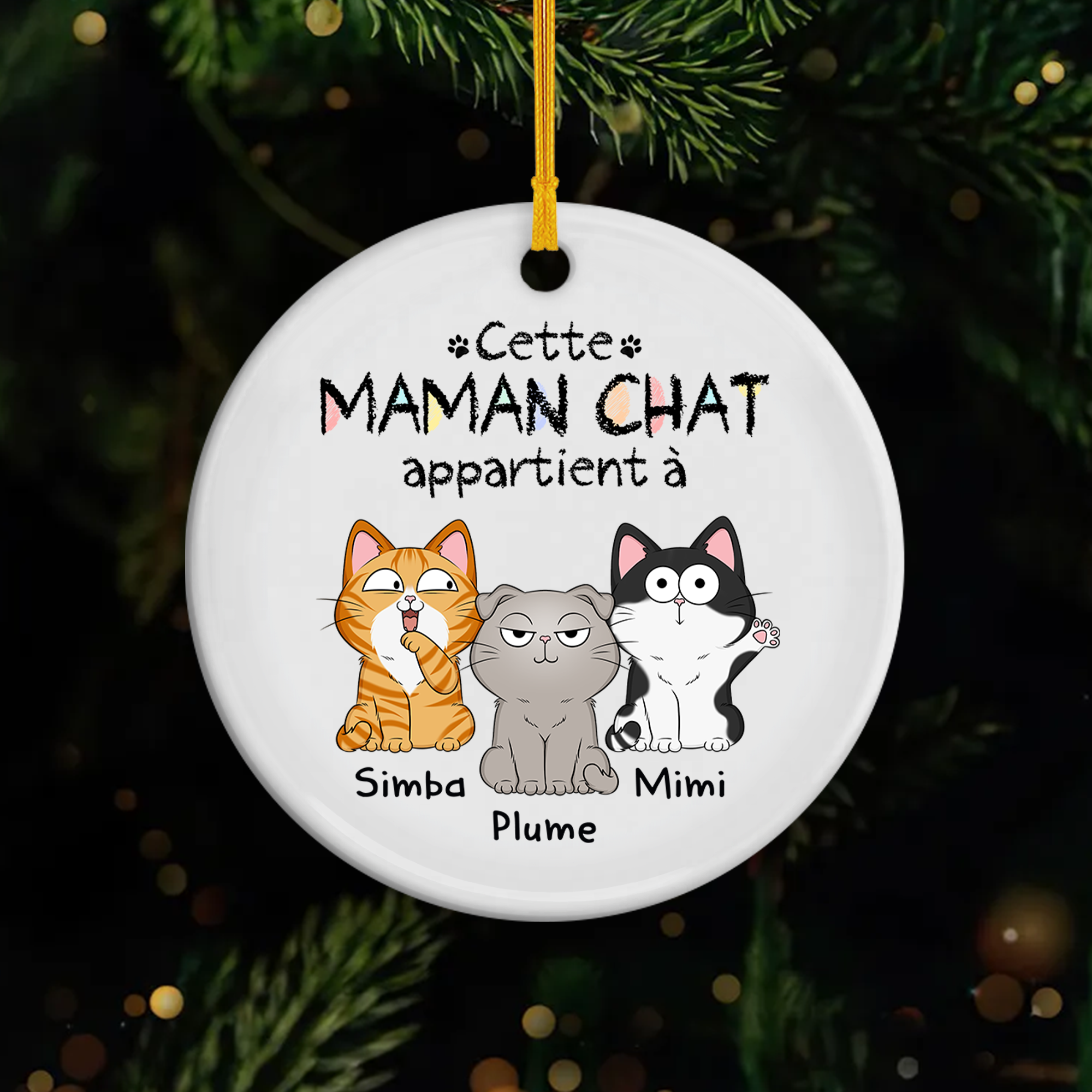 Cette Maman Appartient À - Ornement Céramique Personnalisé Avec Chat Mignon