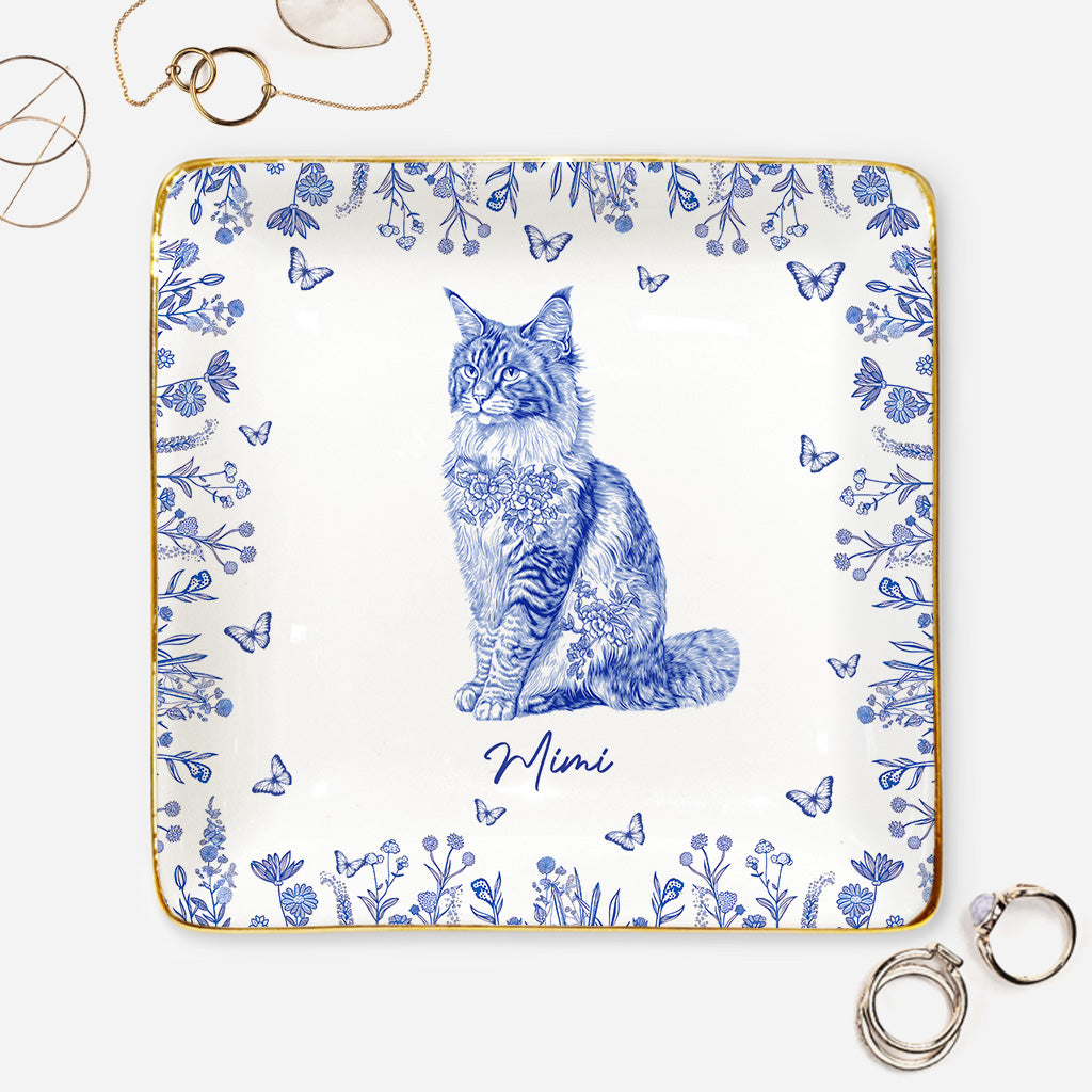 Chat Style Blue-Toile - Coupelle À Bijoux Personnalisée Pour Amoureux Des Chats