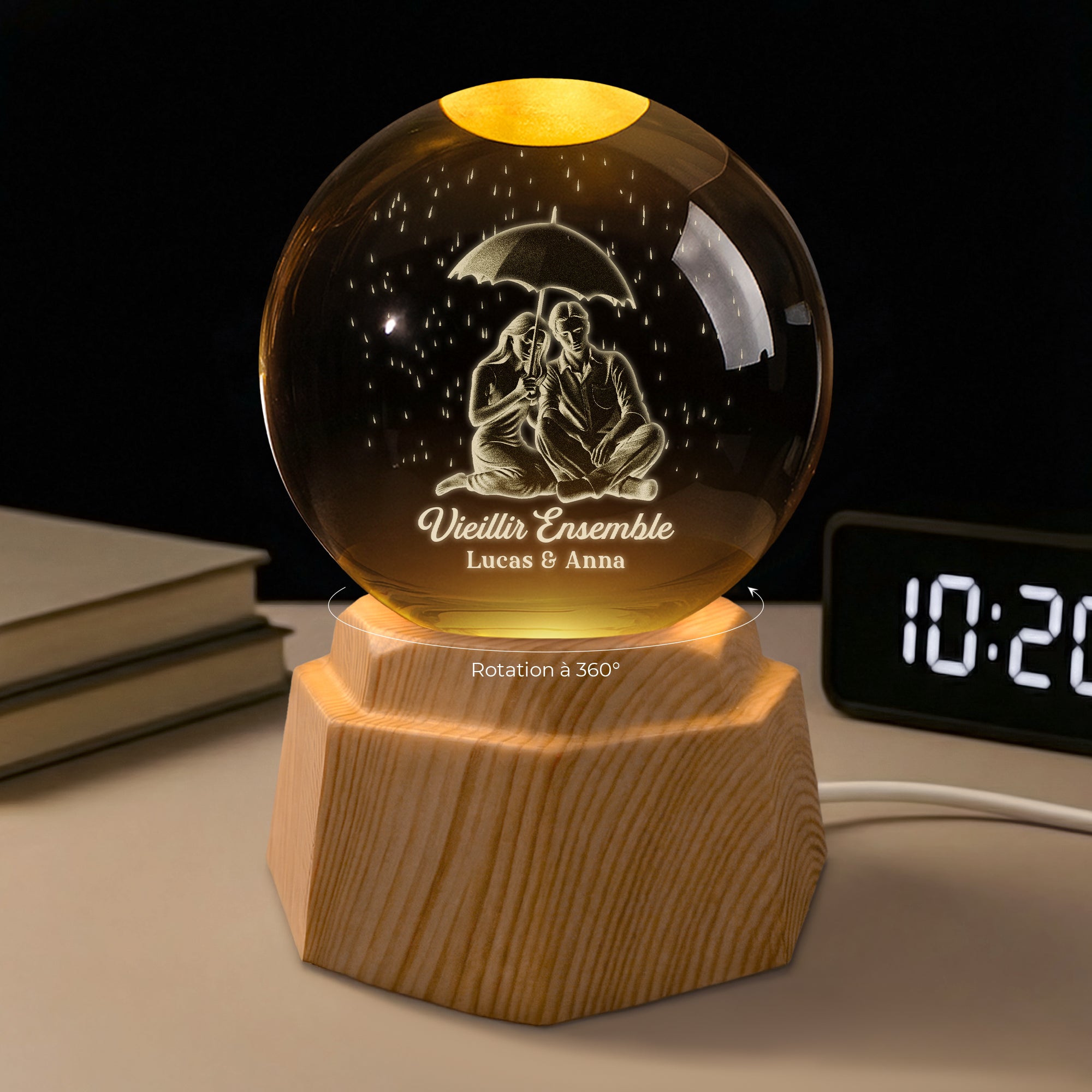 Couple Ensemble - Veilleuse Boule De Cristal 3D Personnalisée