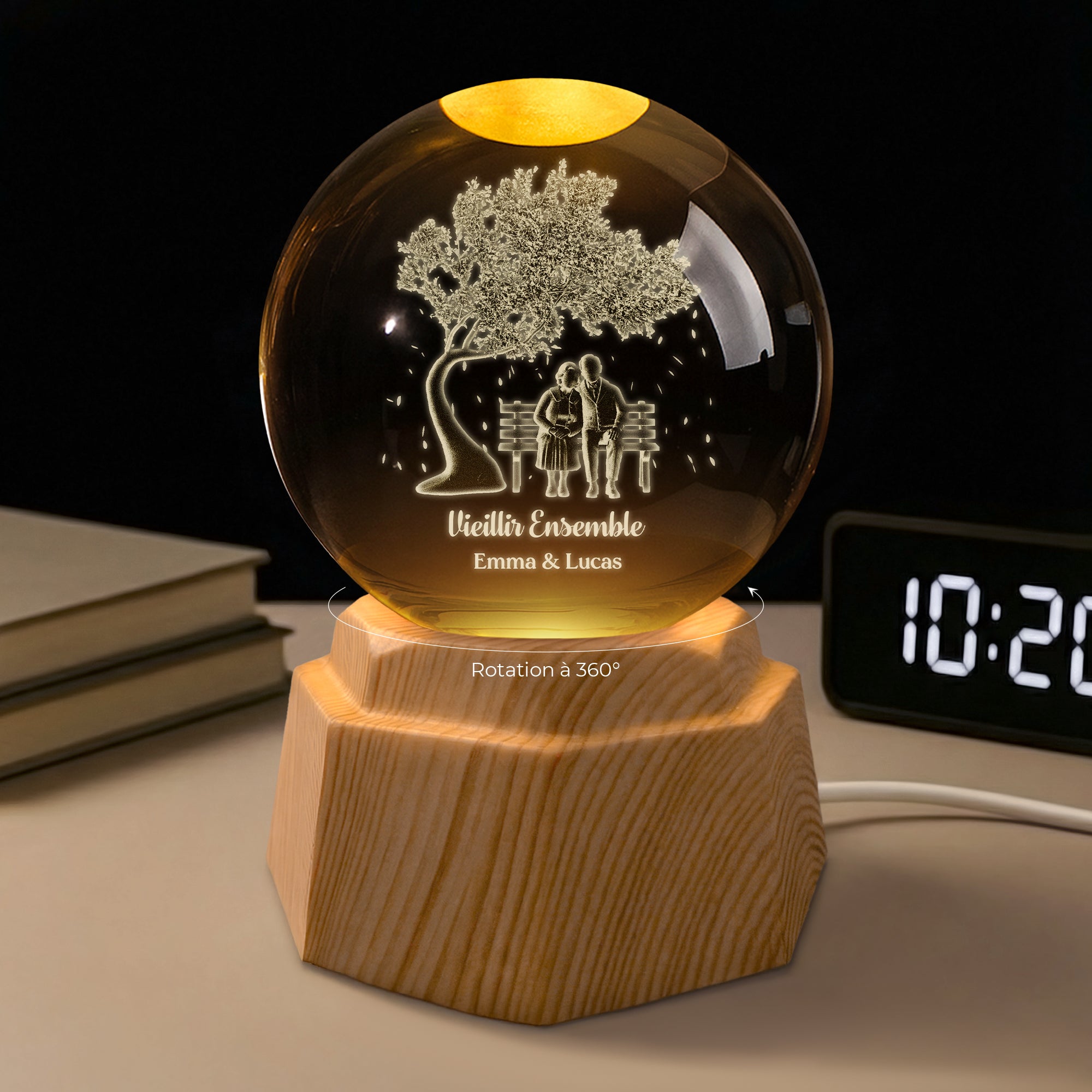 Couple Vieillir Ensemble - Veilleuse Boule De Cristal 3D Personnalisée