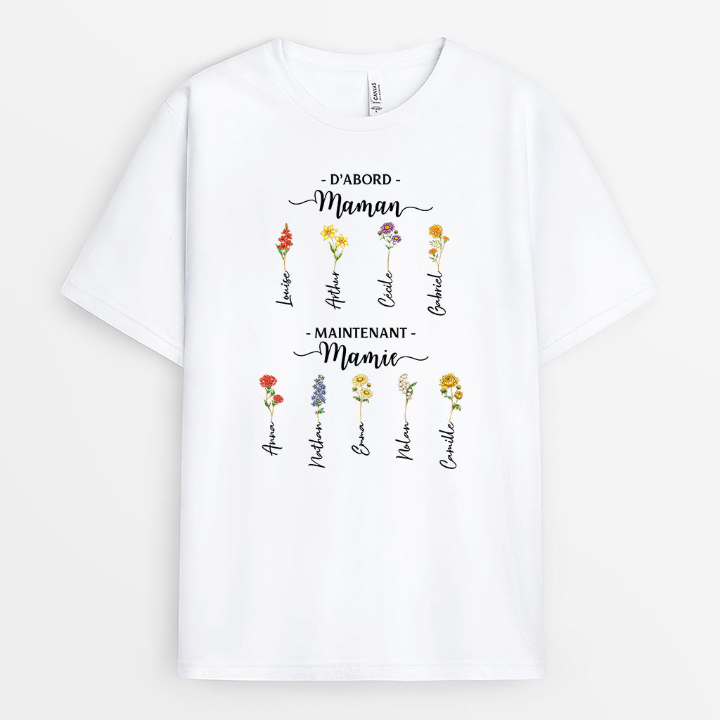 D'abord Maman Ensuite Mamie Avec Jardin De Fleur - Tee Shirt Personnalisable