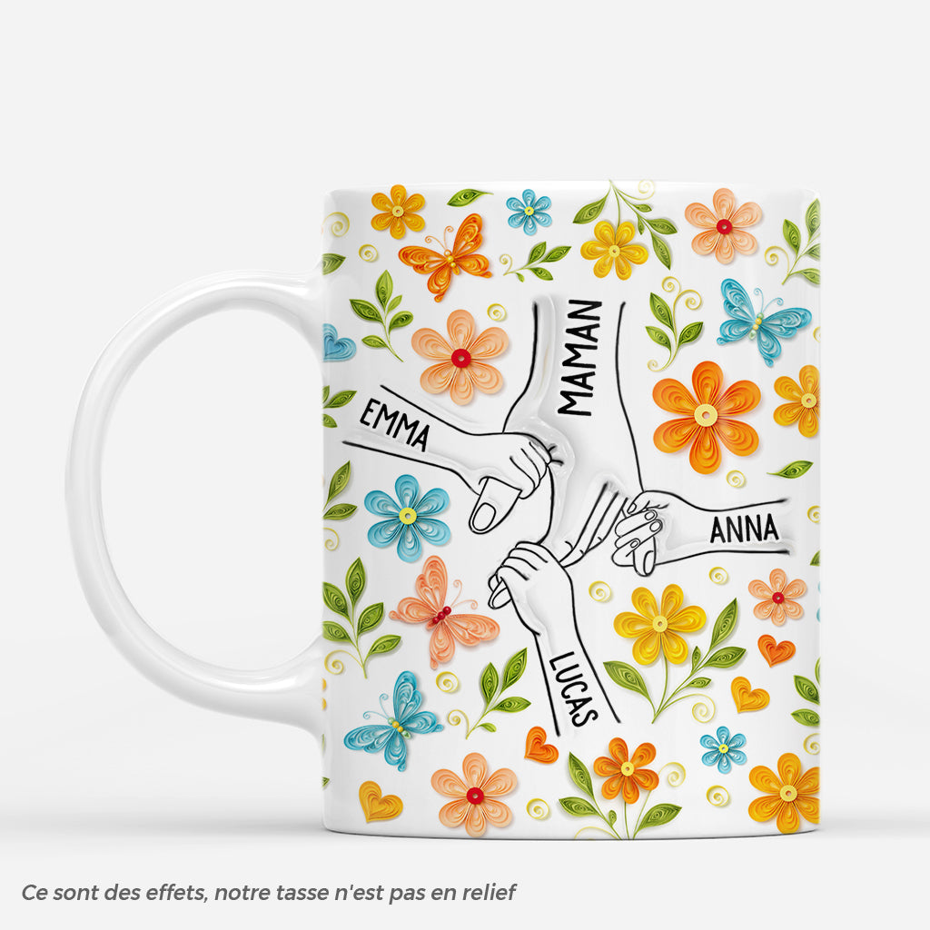 [Effet d'impression 3D] Les Jolies Fleurs - Mug Personnalisé Mamie Maman