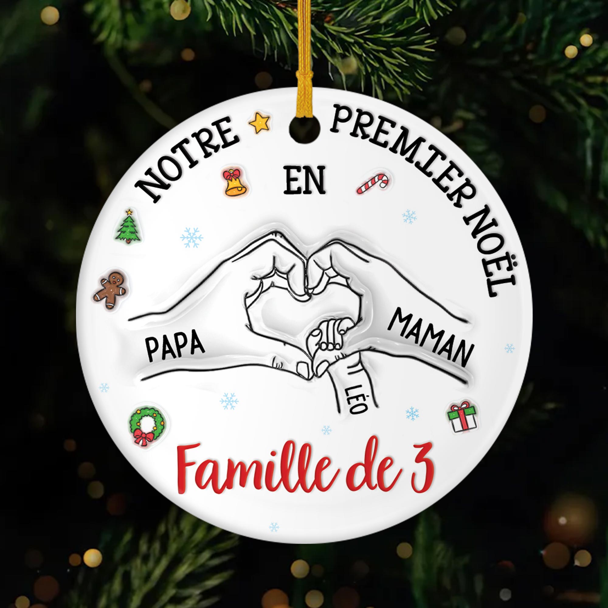 [Effet d'impression 3D] Notre Premier Noël En Famille De 3 - Ornement Céramique Personnalisé