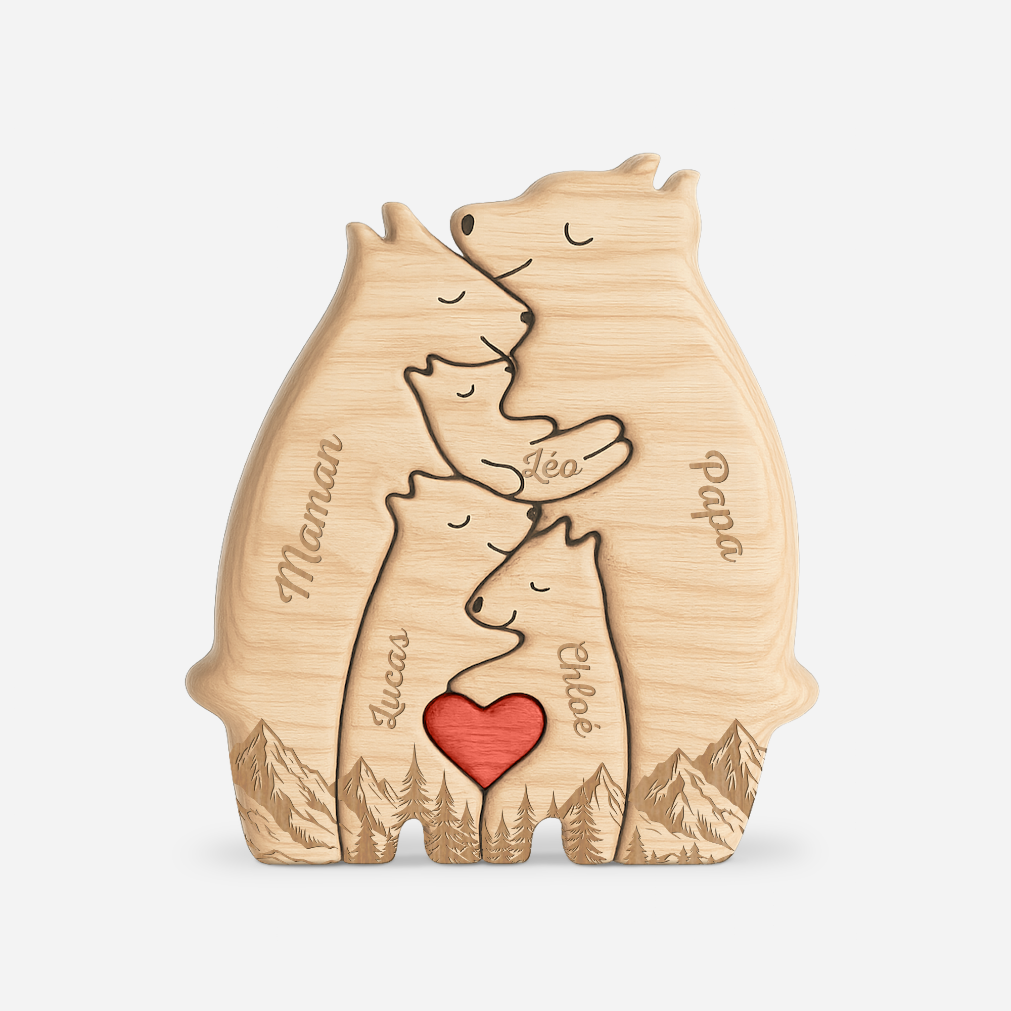Famille Ours Forêt & Montagne - Puzzle En Bois Personnalisé Avec Prénoms