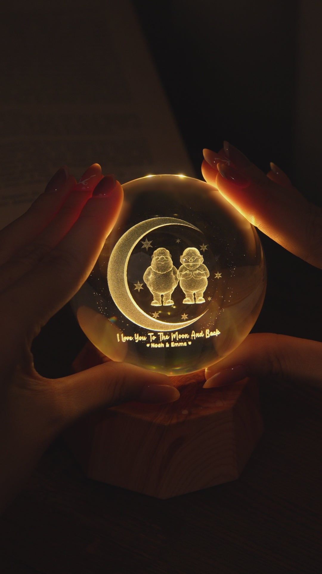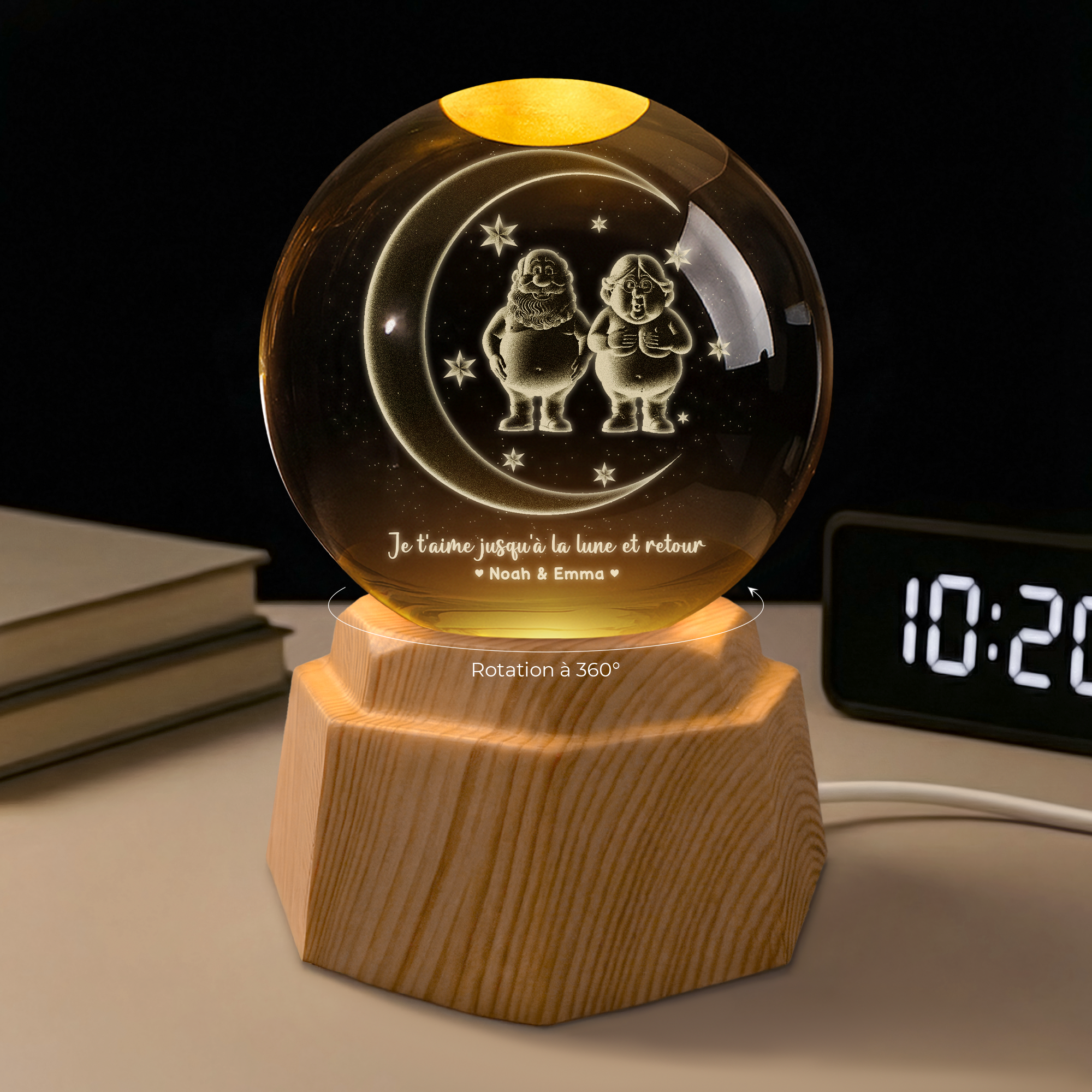 Je T’aime Jusqu’à La Lune - Veilleuse Boule De Cristal 3D Personnalisée Pour Couple