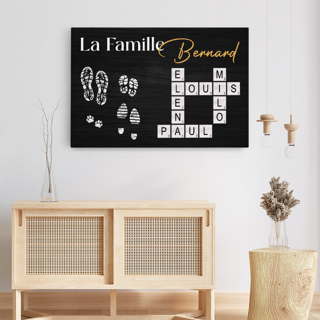 La Famille Avec Empreintes Et Mots Croisés - Cadeau Personnalisé | Toile Pour Famille