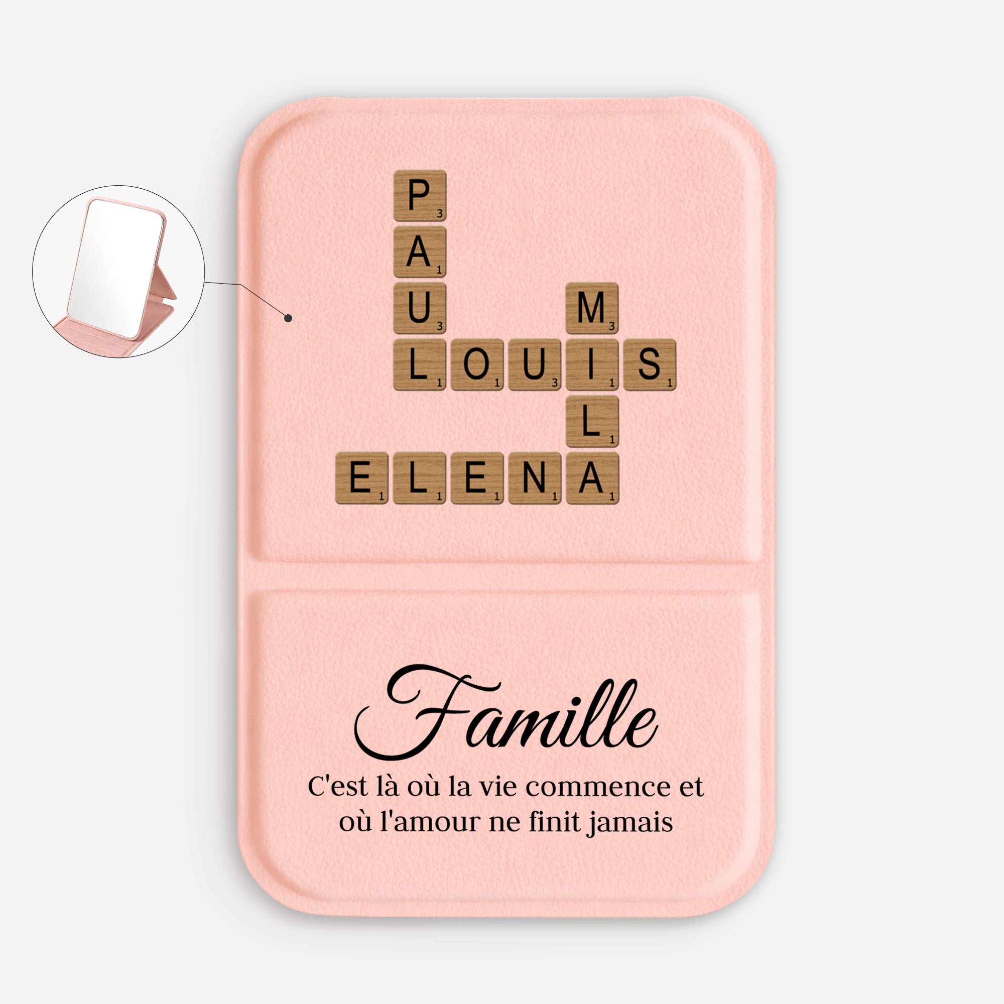 La Famille Avec Mots-croisés - Miroir De Poche Personnalisé