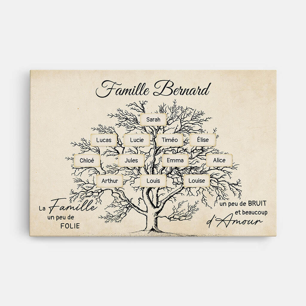 La Famille Beaucoup D'Amour Version Arbre Retro - Cadeau Personnalisé | Toile Pour Famille