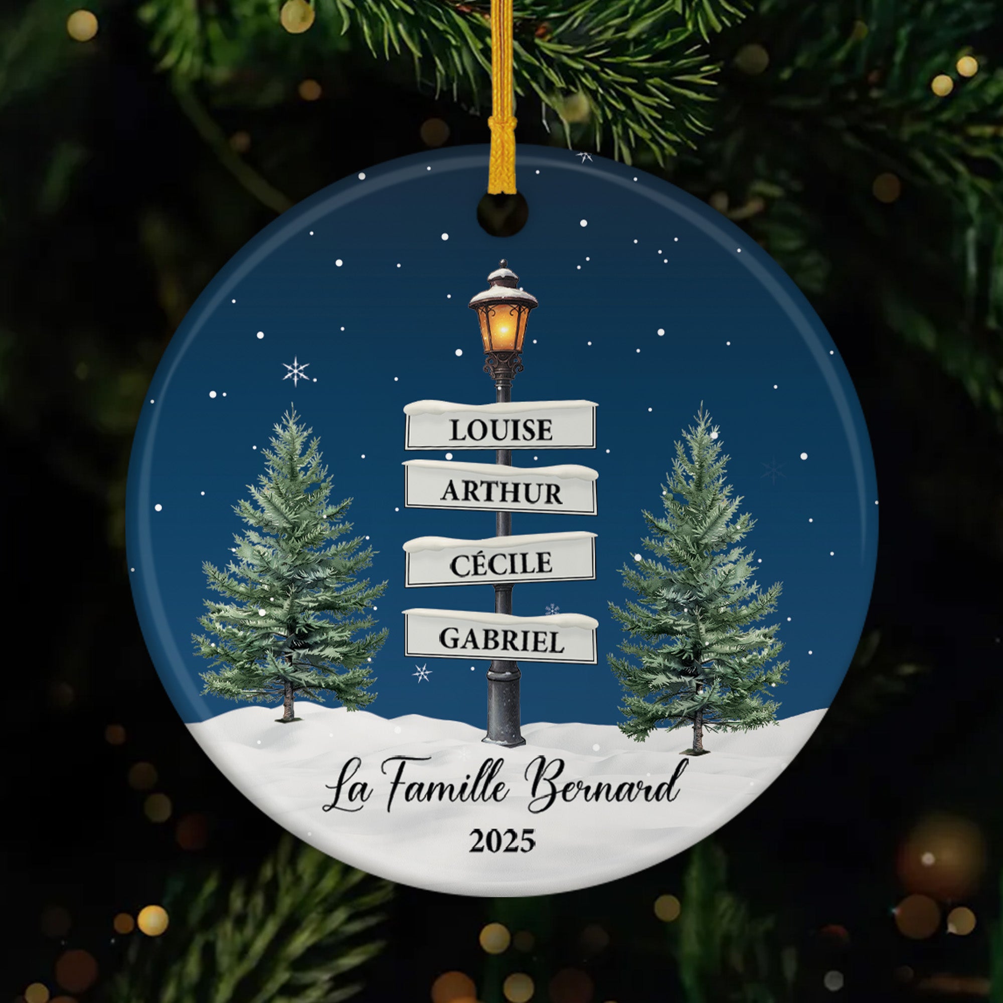 Lampadaire Noël De Famille - Ornement Céramique Personnalisé Avec Prénom