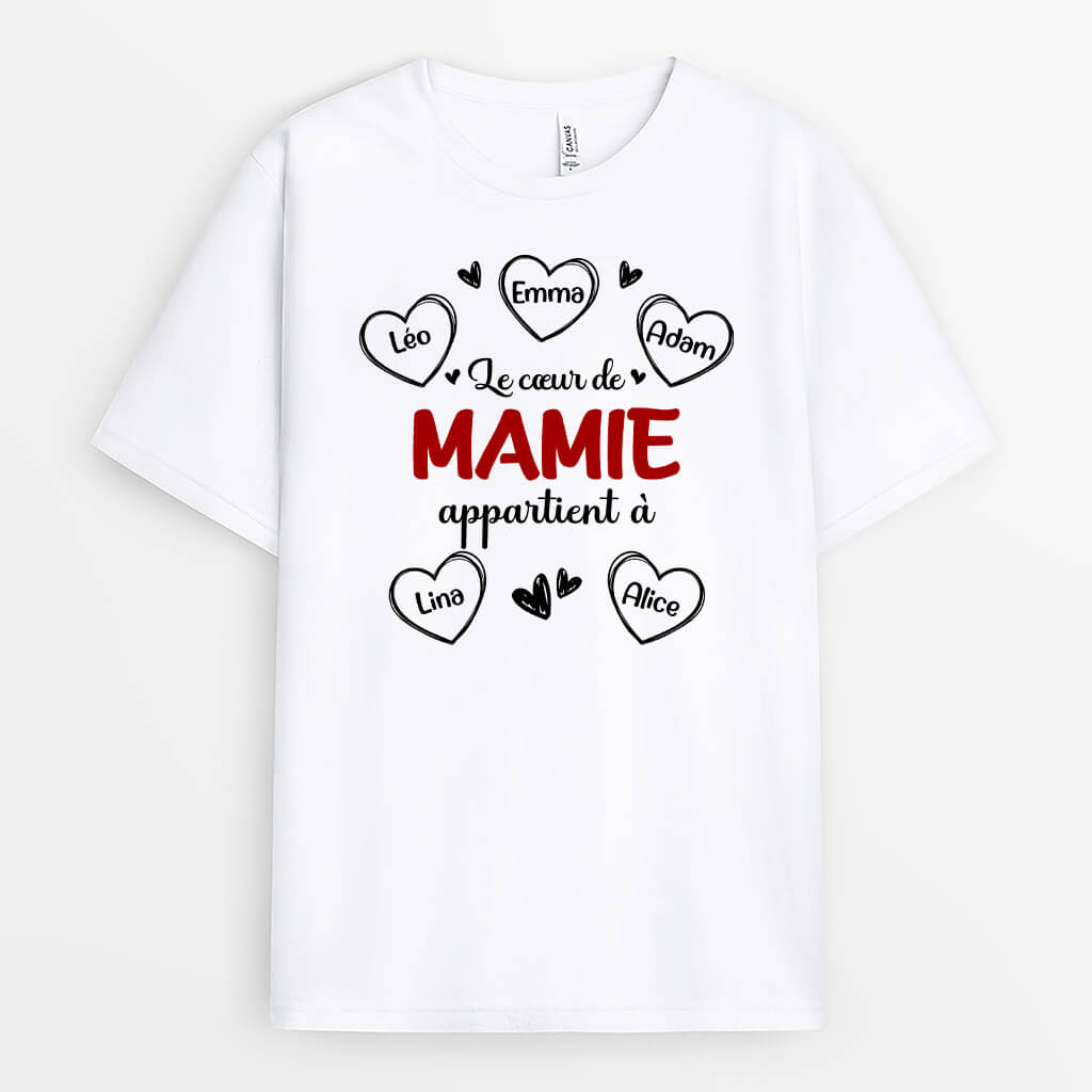 Le Coeur De Mamie Appartient À Version Coeur Rouge - Cadeau Personnalisé | T-shirt pour Femme