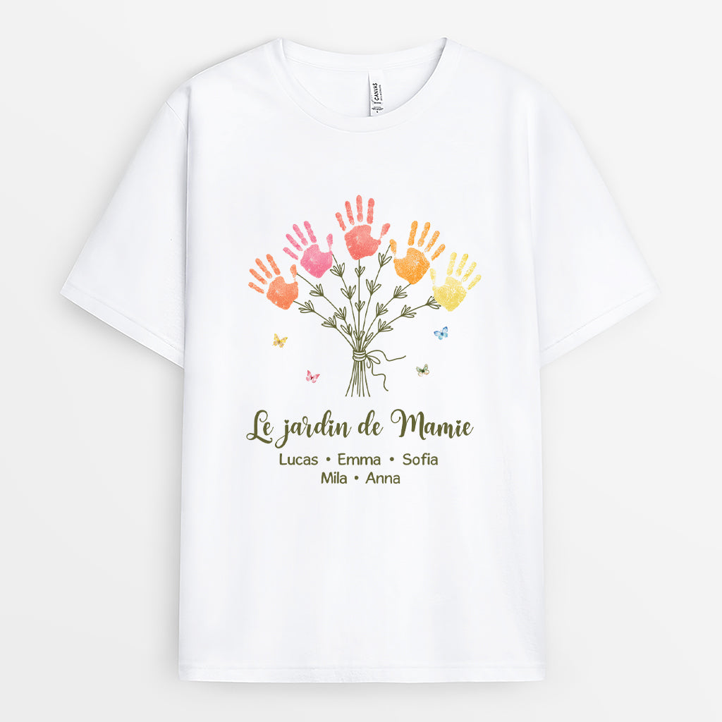 Le Jardin De Maman Mamie Avec Empreintes De Main - T-shirt Personnalisé