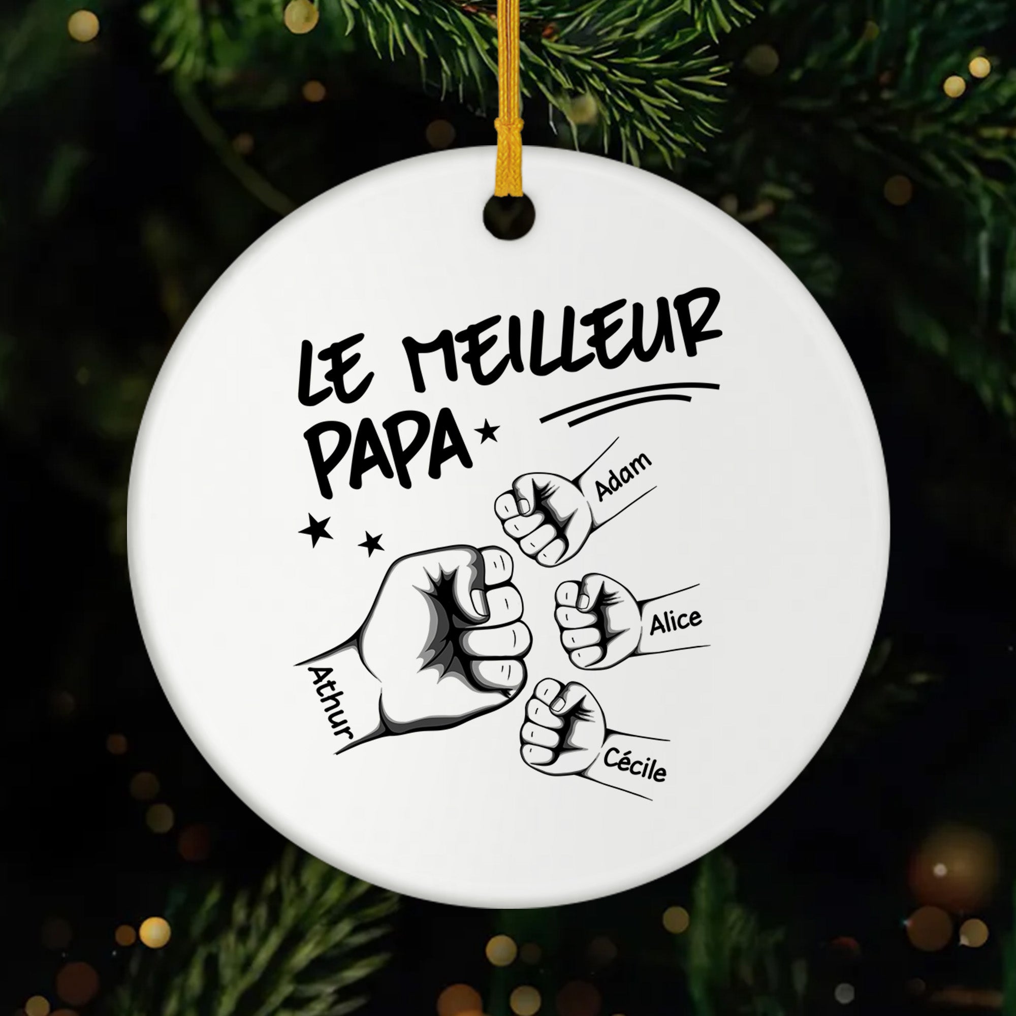 Le Meilleur Papa Version Monochrome - Ornement Noël Céramique Personnalisé Papa Papi