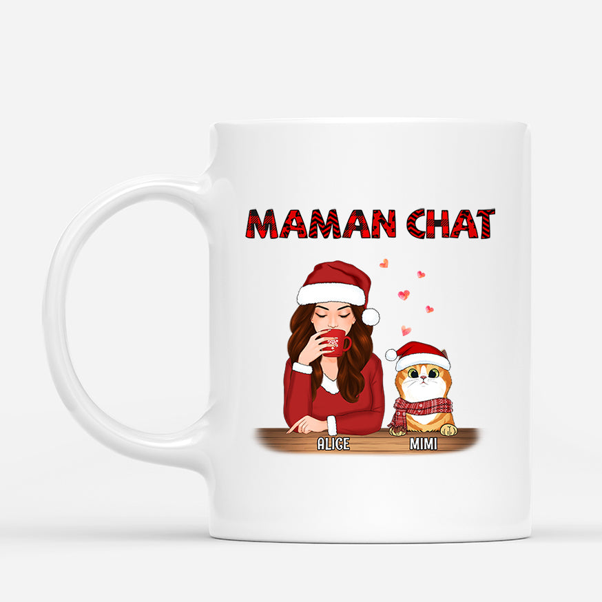 Mug Maman Chat Noël Personnalisé Pour Fan De Chat