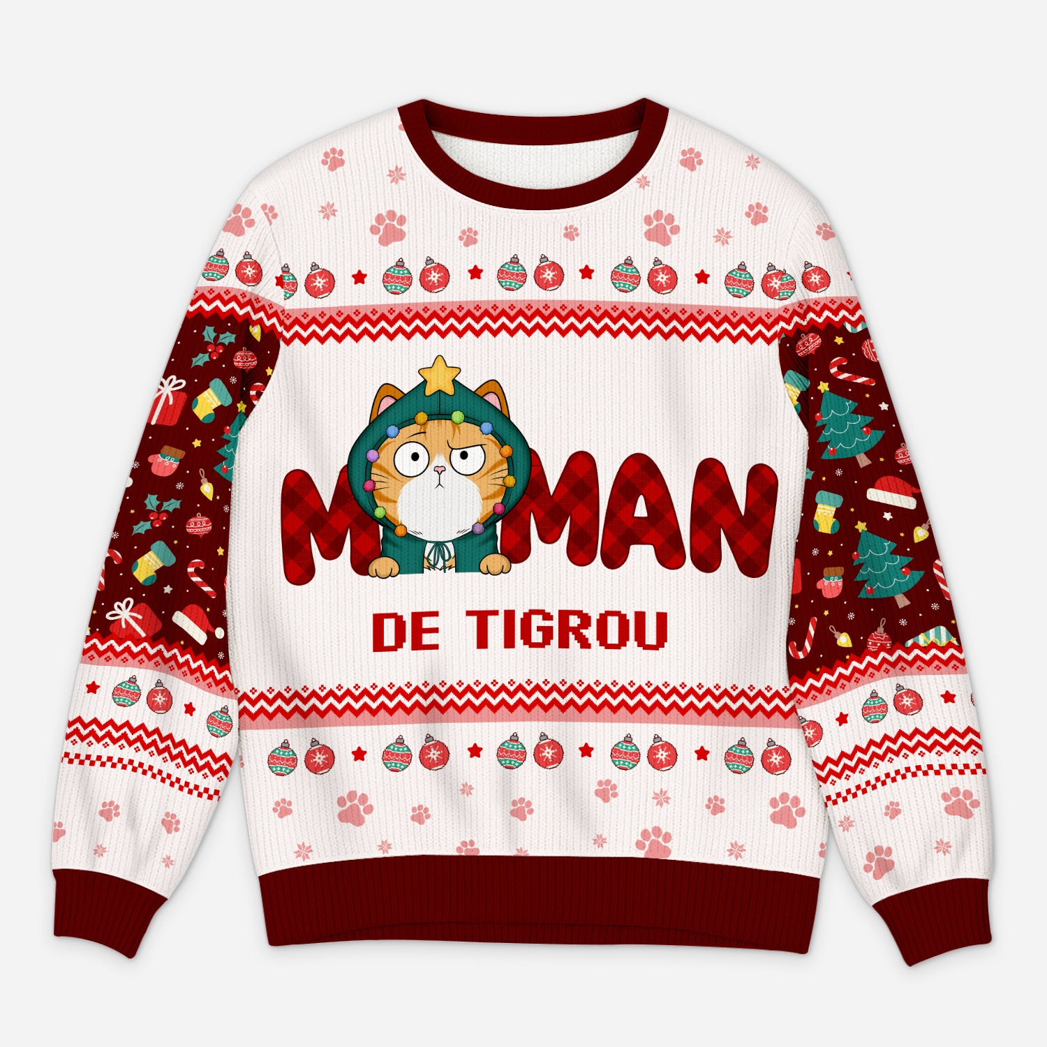 Maman De Chat - Pull Moche De Noël Personnalisé