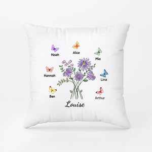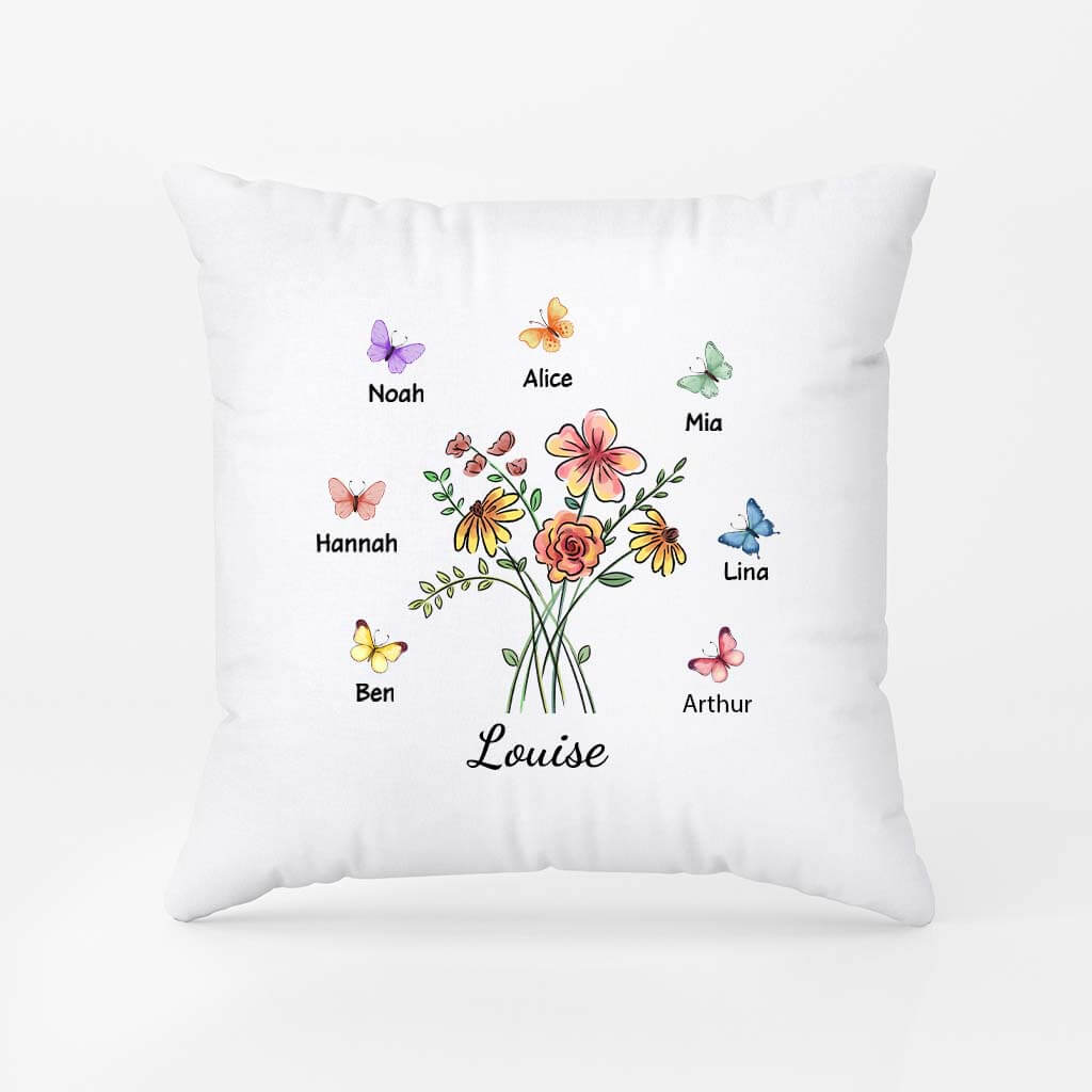 Mamie Avec Fleurs Et Papillons - Cadeau Personnalisé | Coussin Pour Mamie