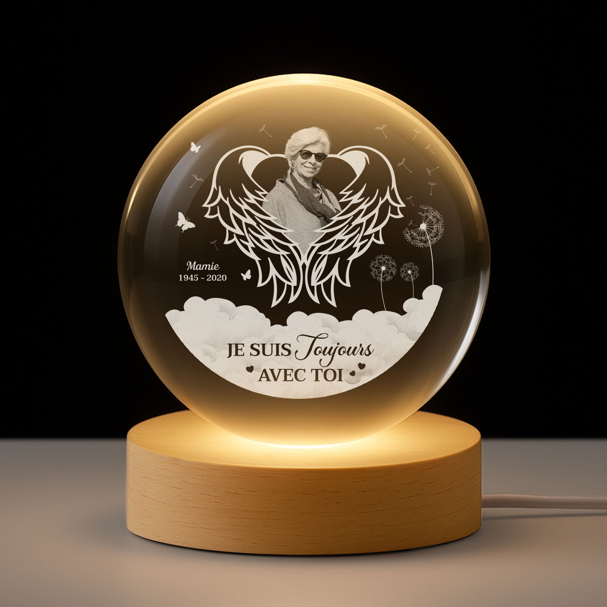 - Matière de haute qualité : Cristal K9 et base en bois équipée d’une lumière LED.