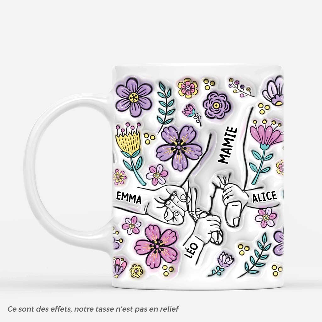 [Effet d'Impression 3D] Mamie Tenant Les Mains Avec Fleurs Violettes 3D - Cadeau Personnalisé | Mug Pour Mamie