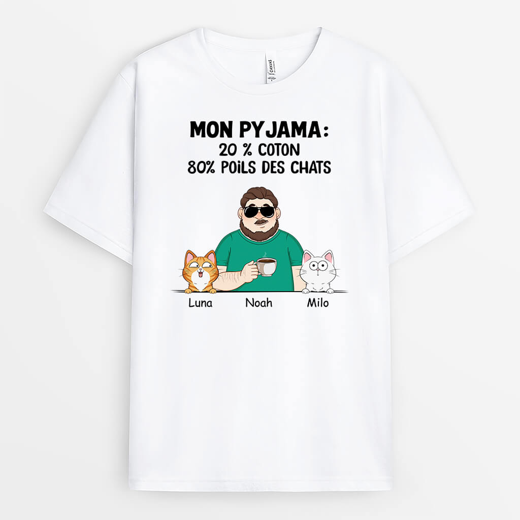 Mon Pyjama Avec 80% Chat Version Claire - Cadeau Personnalisé | T-shirt Pour Amoureux Des Animaux