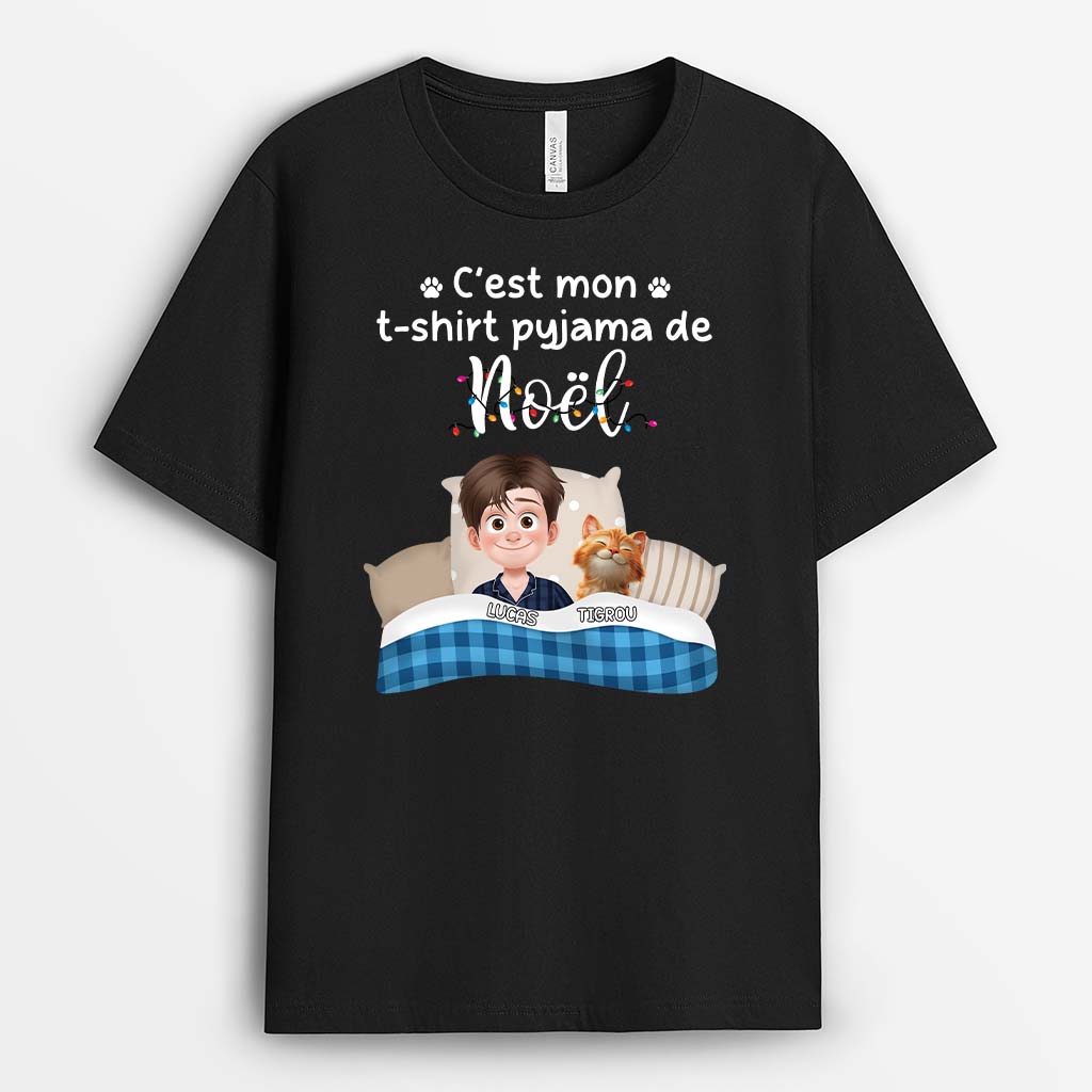 Mon T-shirt Pyjama De Noël Avec Chat - T-shirt Personnalisé Pour Dormir