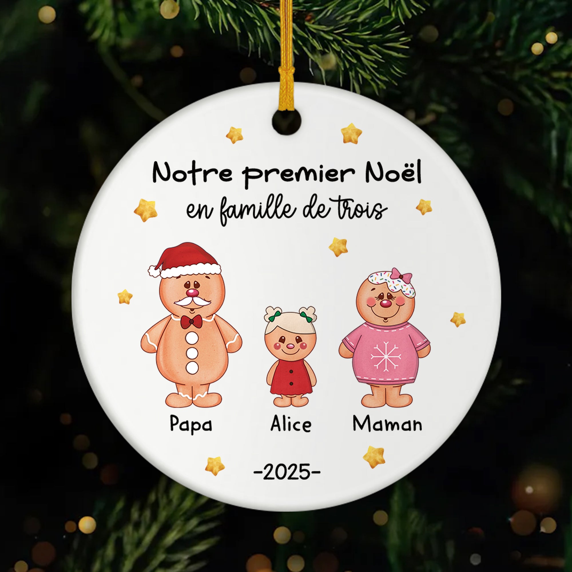 Notre Premier Noël En Famille De Trois - Ornement Céramique Personnalisé