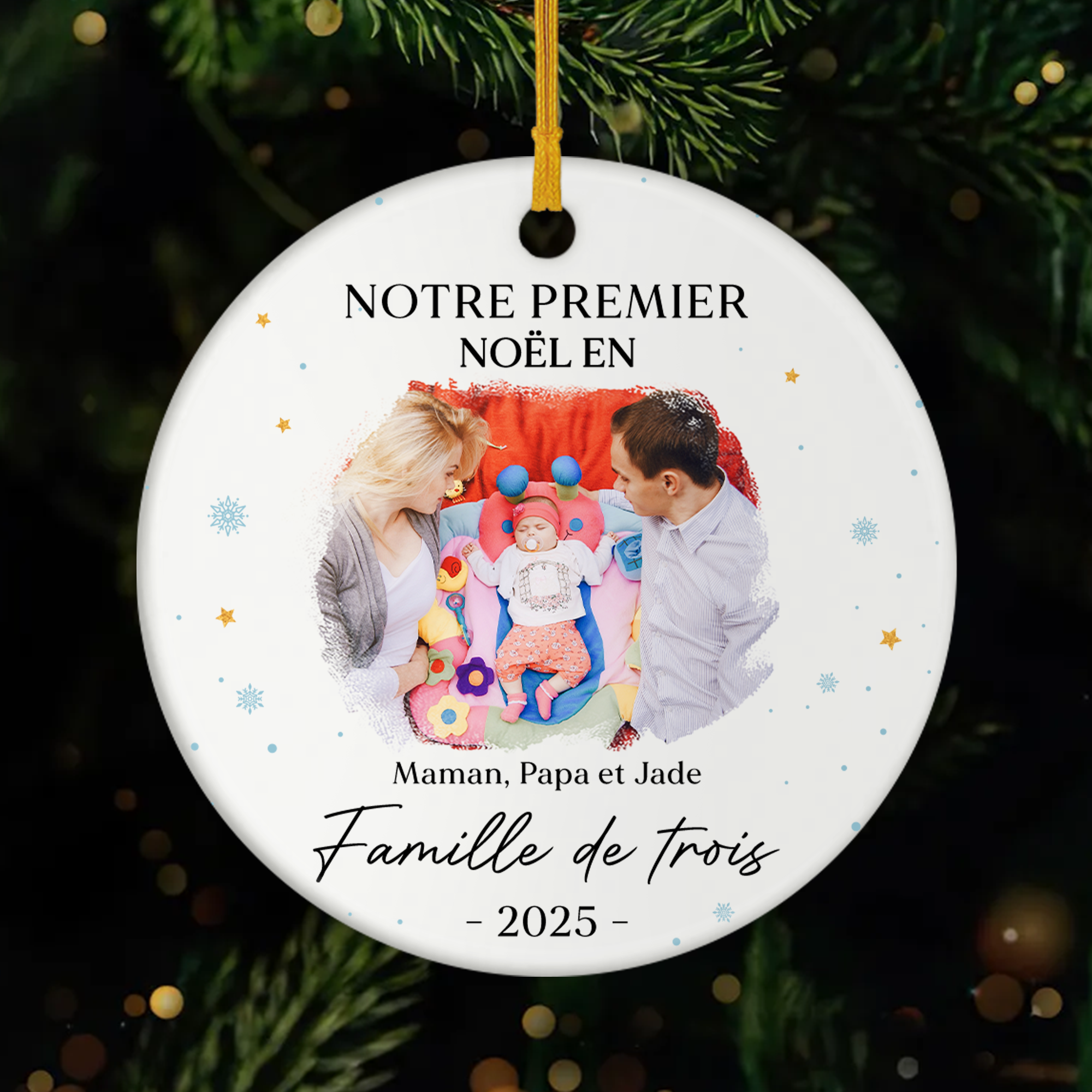 Notre Premier Noël En Famille De Trois - Ornement Noël Céramique Personnalisé Avec Photo