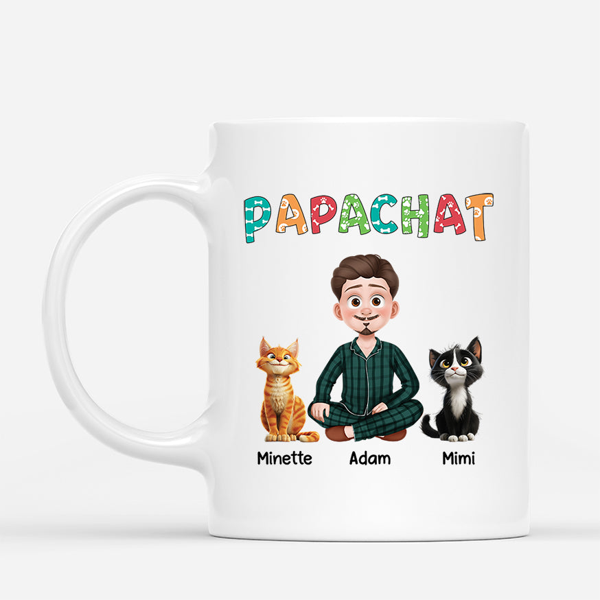 Papa Chat En Pyjama Design Cartoon - Cadeau Personnalisé | Mug Pour Amoureux Des Chats