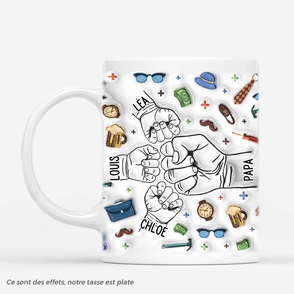 [Effet d'impression 3D] Papy Avec Bosses De Poing Version Accessoires - Cadeau Personnalisé | Mug Pour Papy