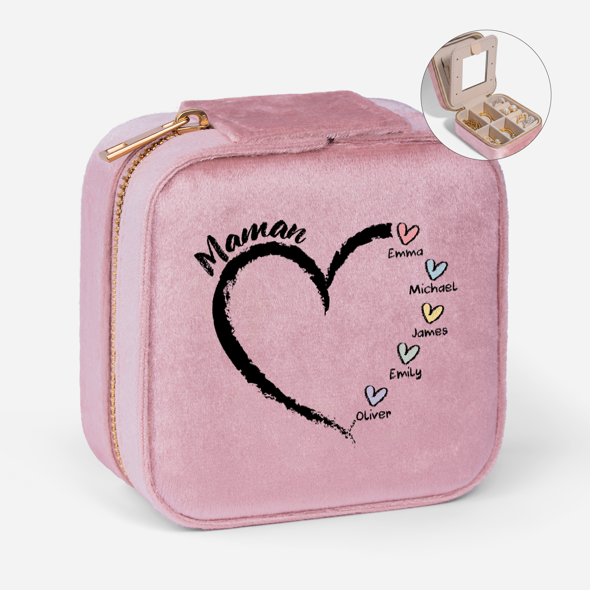 Petits Cœurs De Maman Mamie - Boîte À Bijoux En Velours Personnalisée