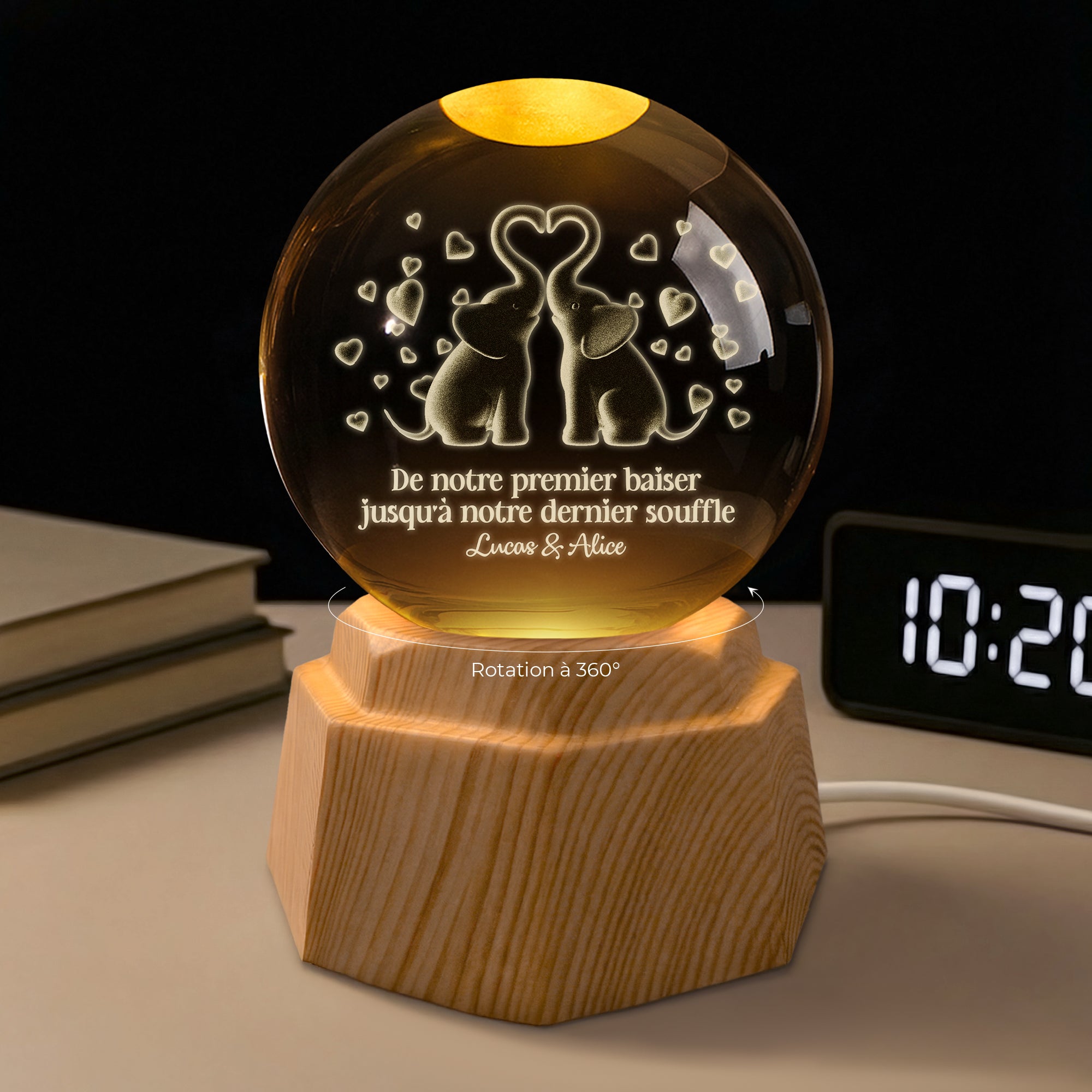 Premier Baiser De Couple - Veilleuse Boule De Cristal 3D Personnalisée