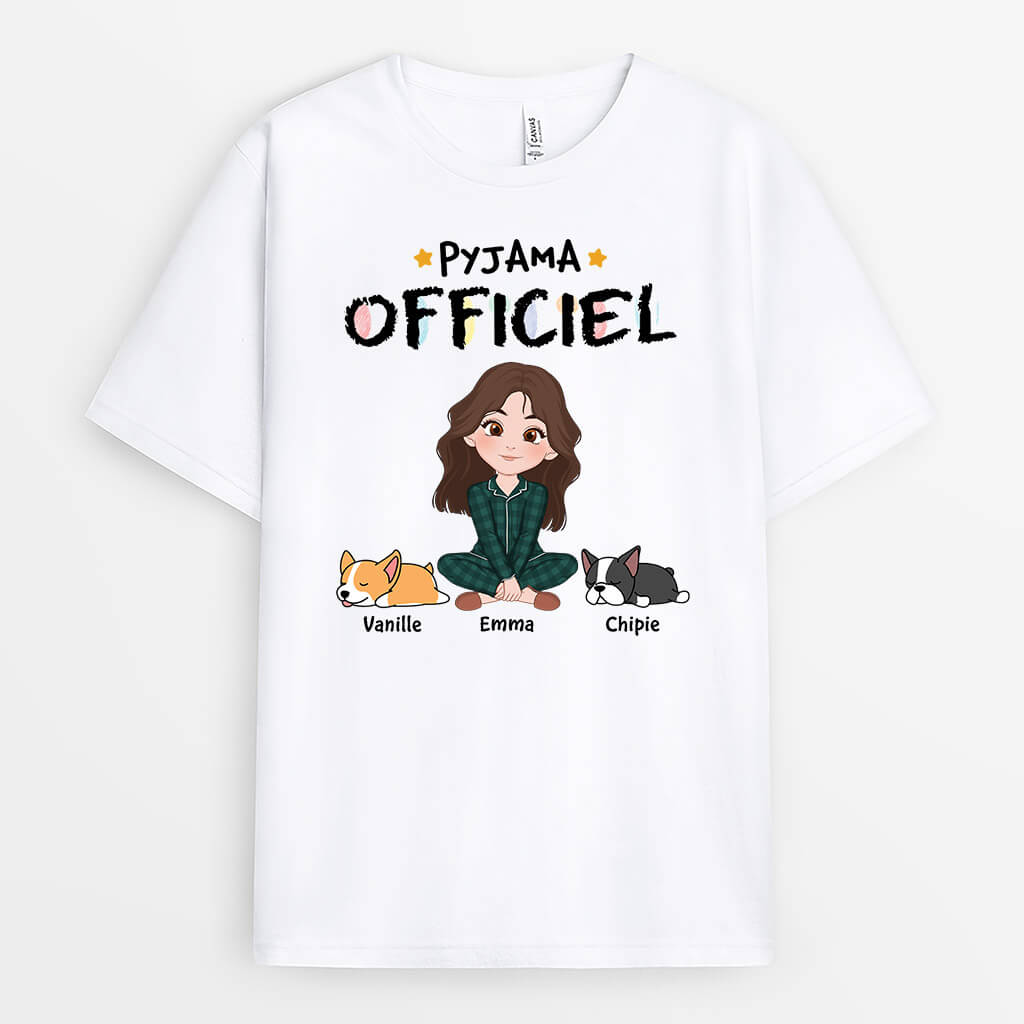 Pyjama Officiel Mignon Avec Des Chiens Dormant - Cadeau Personnalisé | T-shirt Pour Amoureux Des Animaux