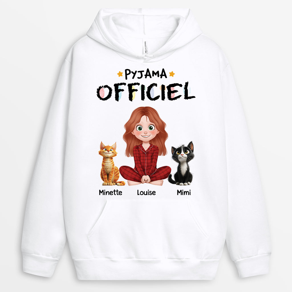 Pyjama Officiel Version Cartoon - Cadeau Personnalisé | Sweat à Capuche Pour Amoureux Des Chats