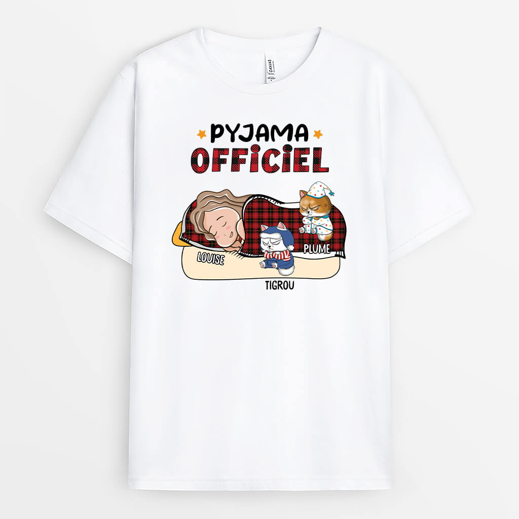 Pyjama Officiel Version Chat En Pyjama - Cadeau Personnalisé | T-Shirt Pour Amoureux Des Chats