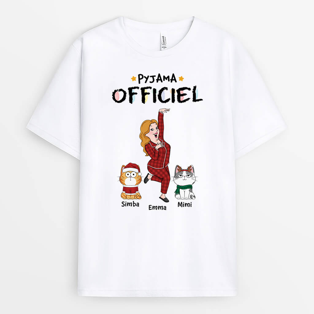 Pyjama Officiel Version Noel Avec Chats Rigolos - Cadeau Personnalisé | T-shirt Pour Amoureux Des Animaux