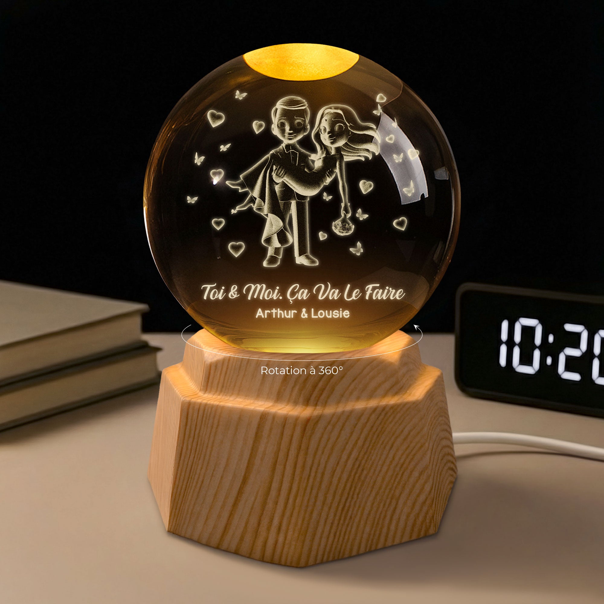 Toi Et Moi - Veilleuse Boule De Cristal 3D Personnalisée Couple