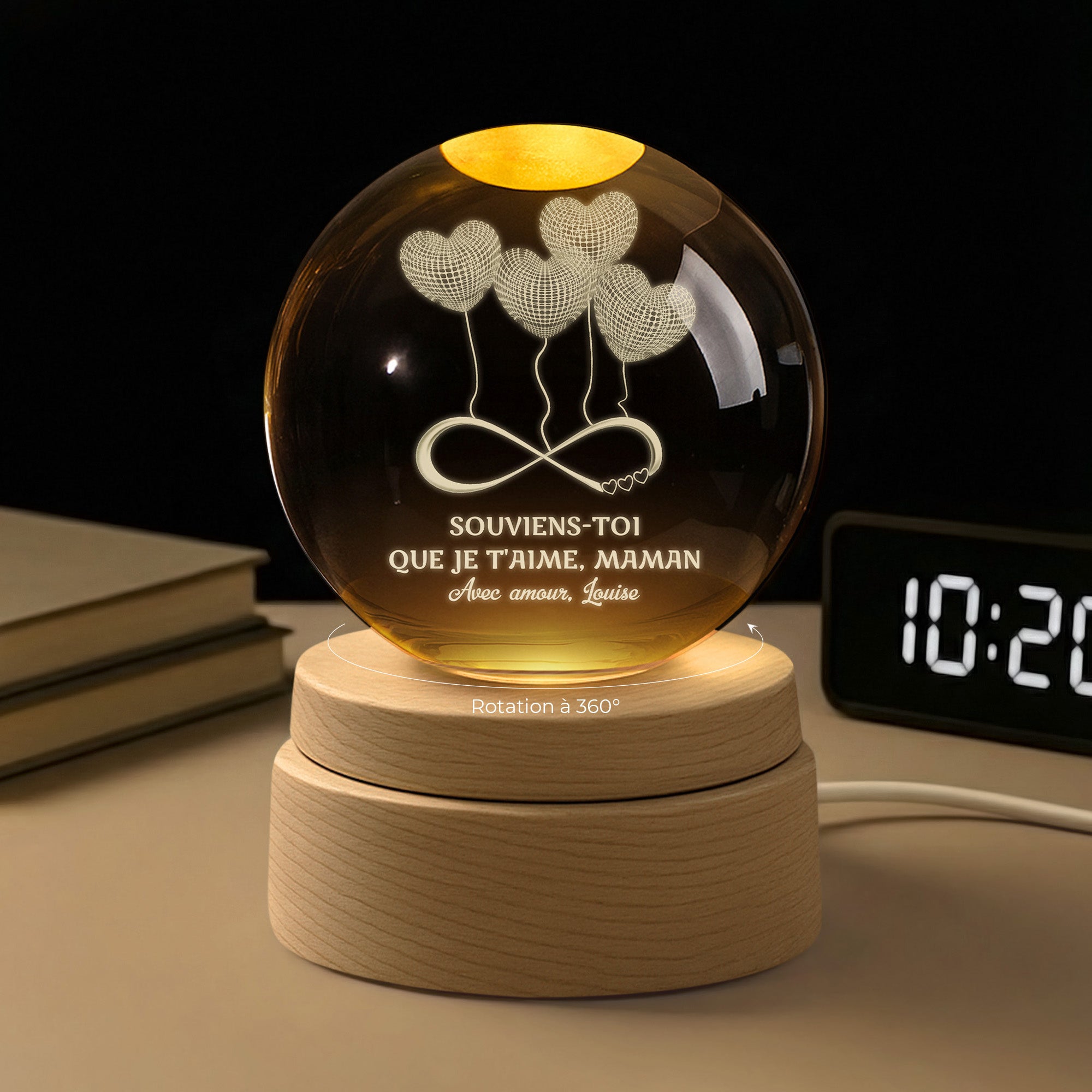 Veilleuse Boule De Cristal 3D Personnalisée - Maman Papa Souviens-toi Que Je T'aime