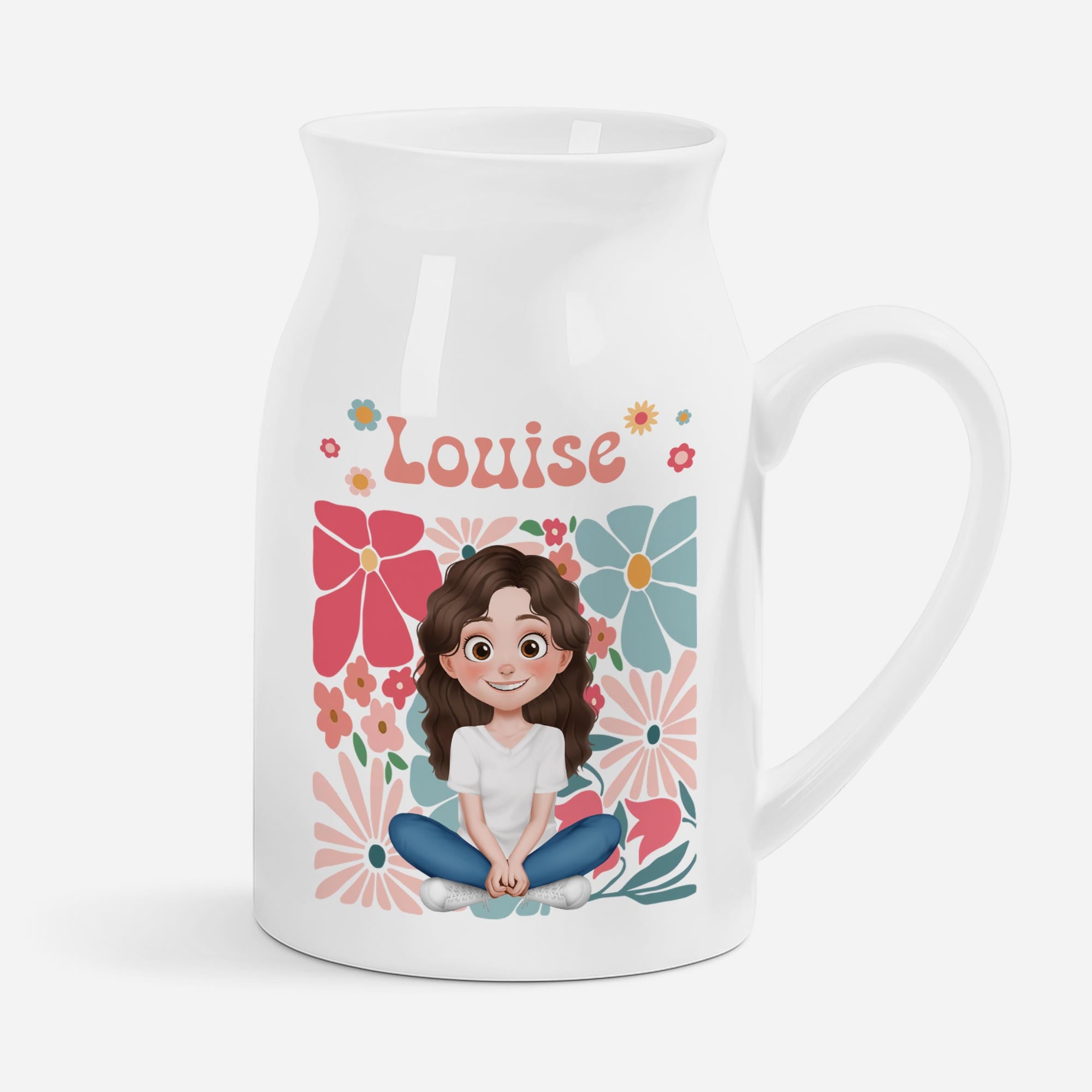 Version Cartoon Floral - Vase Personnalisé Pour Femme