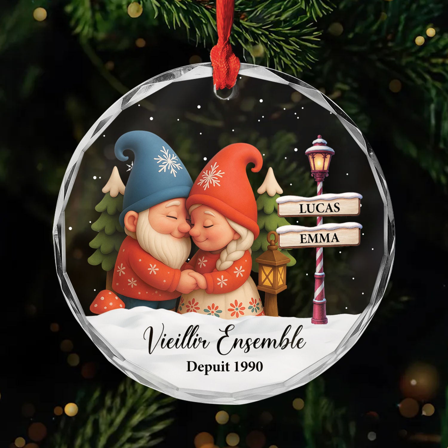 Vieillir Ensemble Couple Gnome - Ornement Noël En Verre Personnalisé